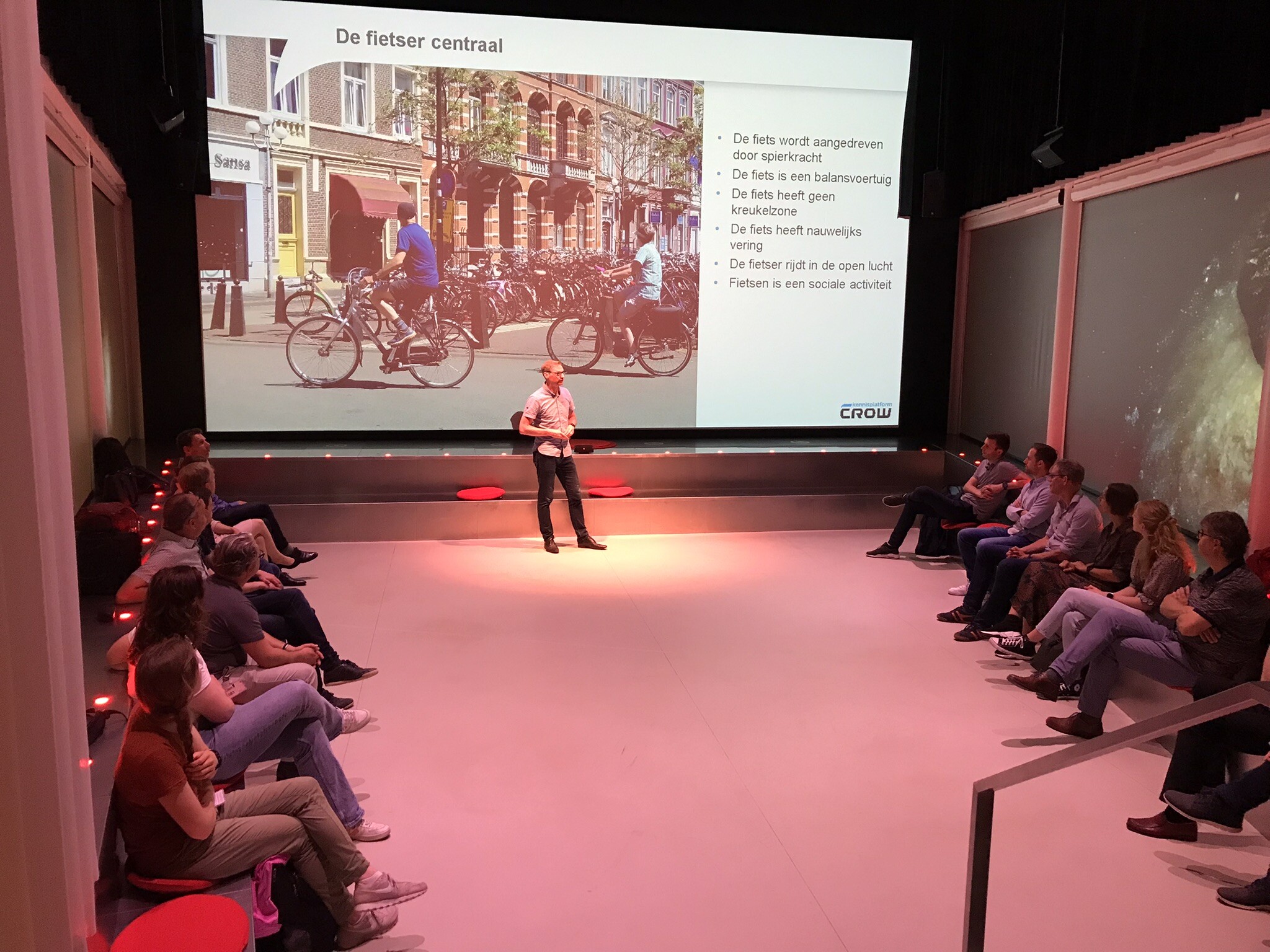 Mark van Gurp van CROW gaf de opgave weer en Stefan Westerman van ANWB gaf ons inzicht in de verschillende doelgroepen. Met elkaar gingen we ons verdiepen in de uitgangspunten voor het ontwerp van het fietspad vanuit verschillende doelgroepen. Vervolgens gingen we per wegvak en per kruispunt binnen en buiten de bebouwde kom ontwerpideeën spuien. Dit resulteerde in vier white boards met uitgangspunten en ontwerpschetsen. Belangrijk procesinzicht was om de doelgroepen, uitgangspunten en randvoorwaarden van te voren goed te bepalen ten behoeve van de ontwerpopgave. Op de website vind je een uitgebreide samenvatting van de middag en de resultaten welke zal worden aangeboden aan CROW.